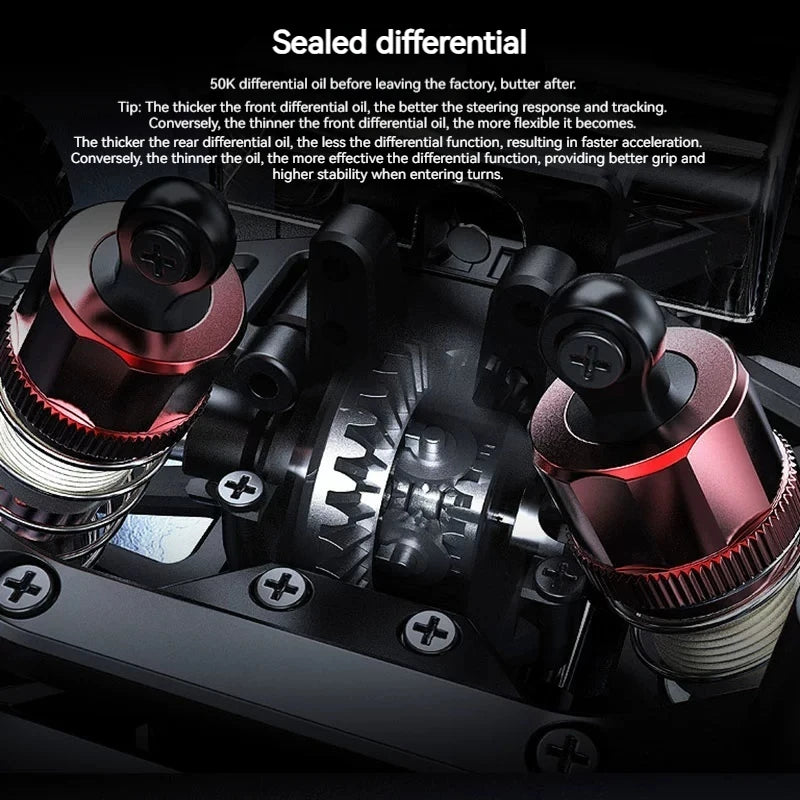 - Durable 1:14 scale build blends sturdy metal chassis and tough plastic, with built-in gyro stabilization for smooth, controlled drifts at high speeds, on pavement or dirt.