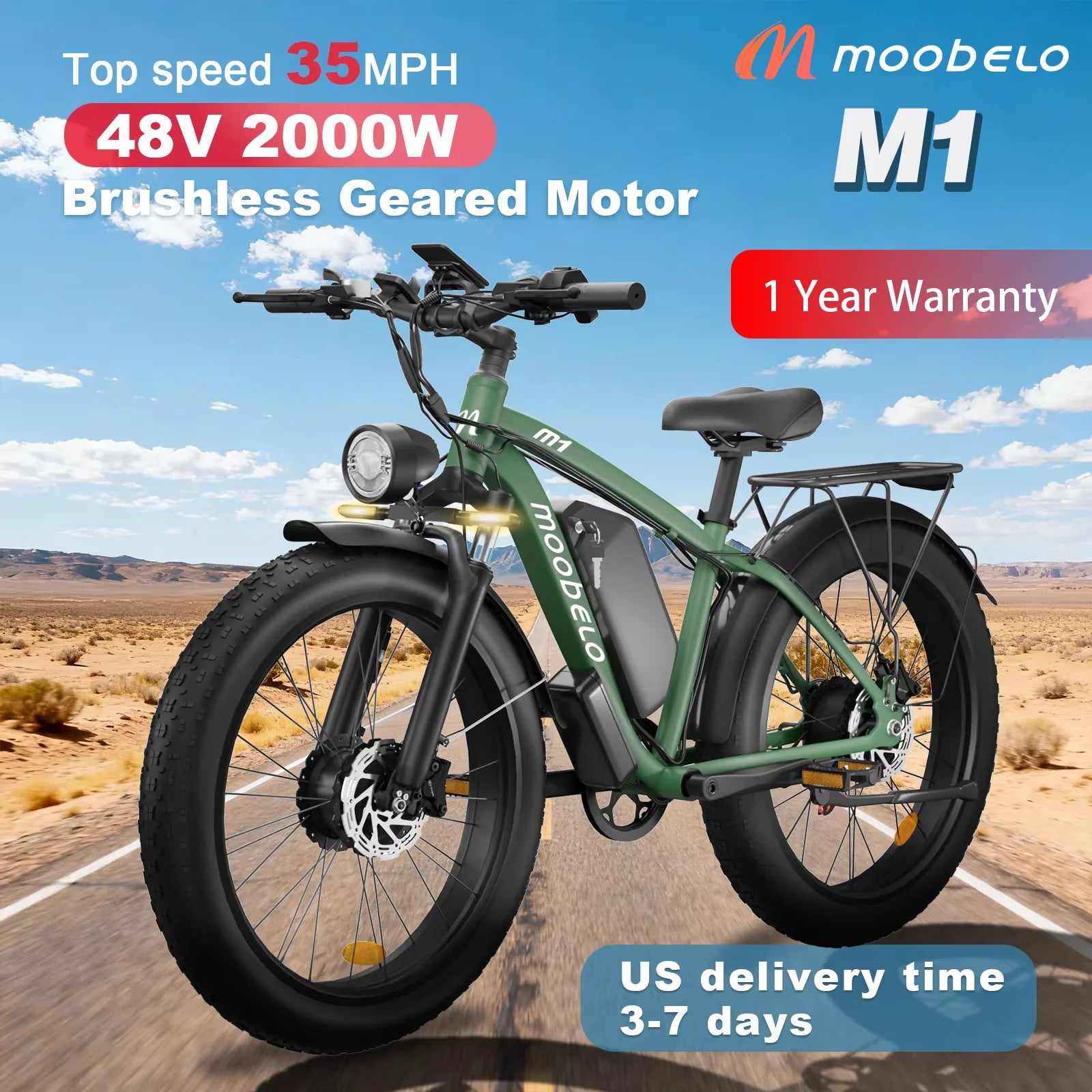 MOOBELO Ebike M1 Aluminum Fat Tire 48V 2000W Dual Motor
